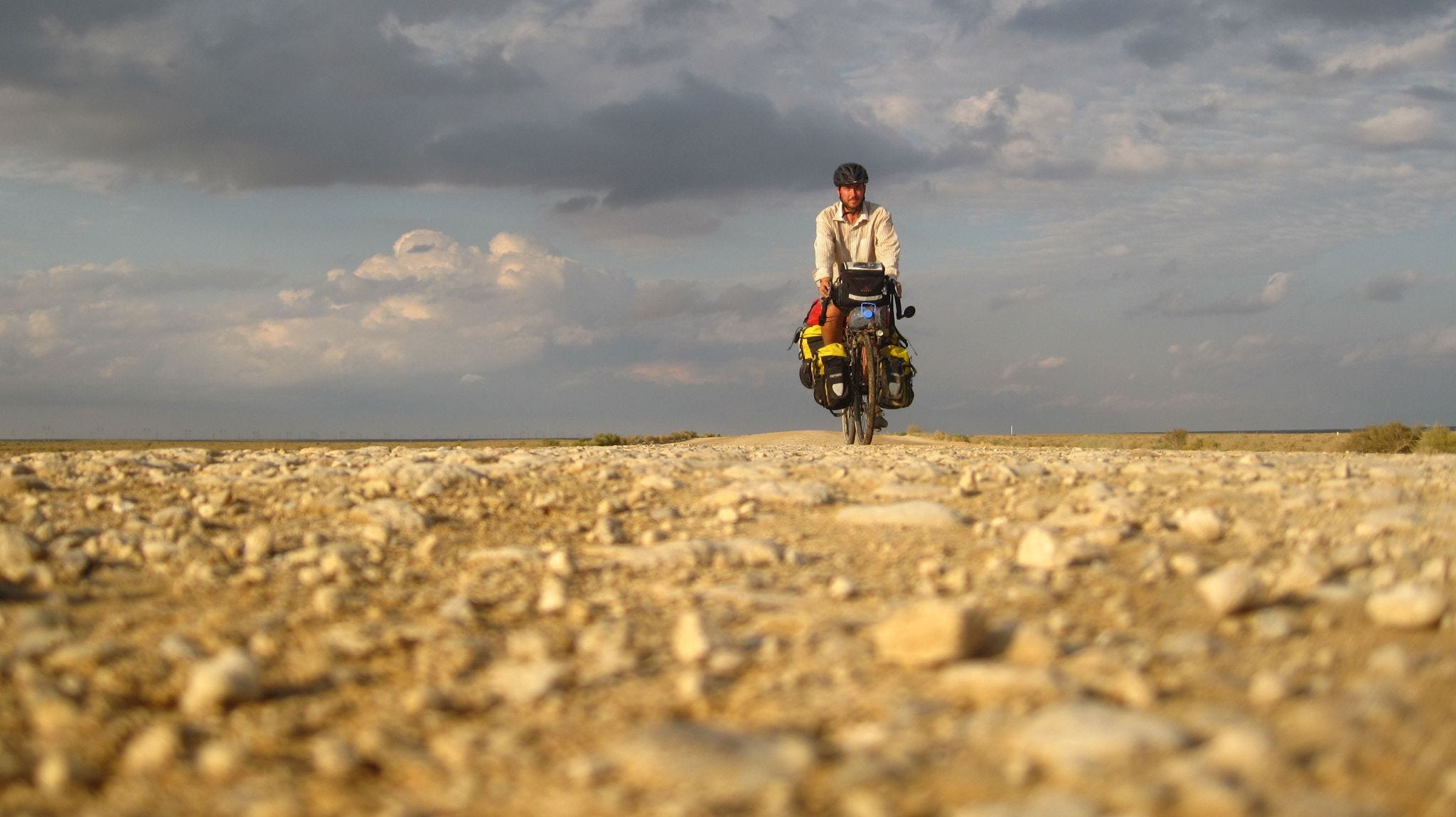 Two men with palindromic names are on long distance cycling trips - Noel is American and riding East, Leon is British and riding West, they meet in Kazakhstan. Beauty ensues.