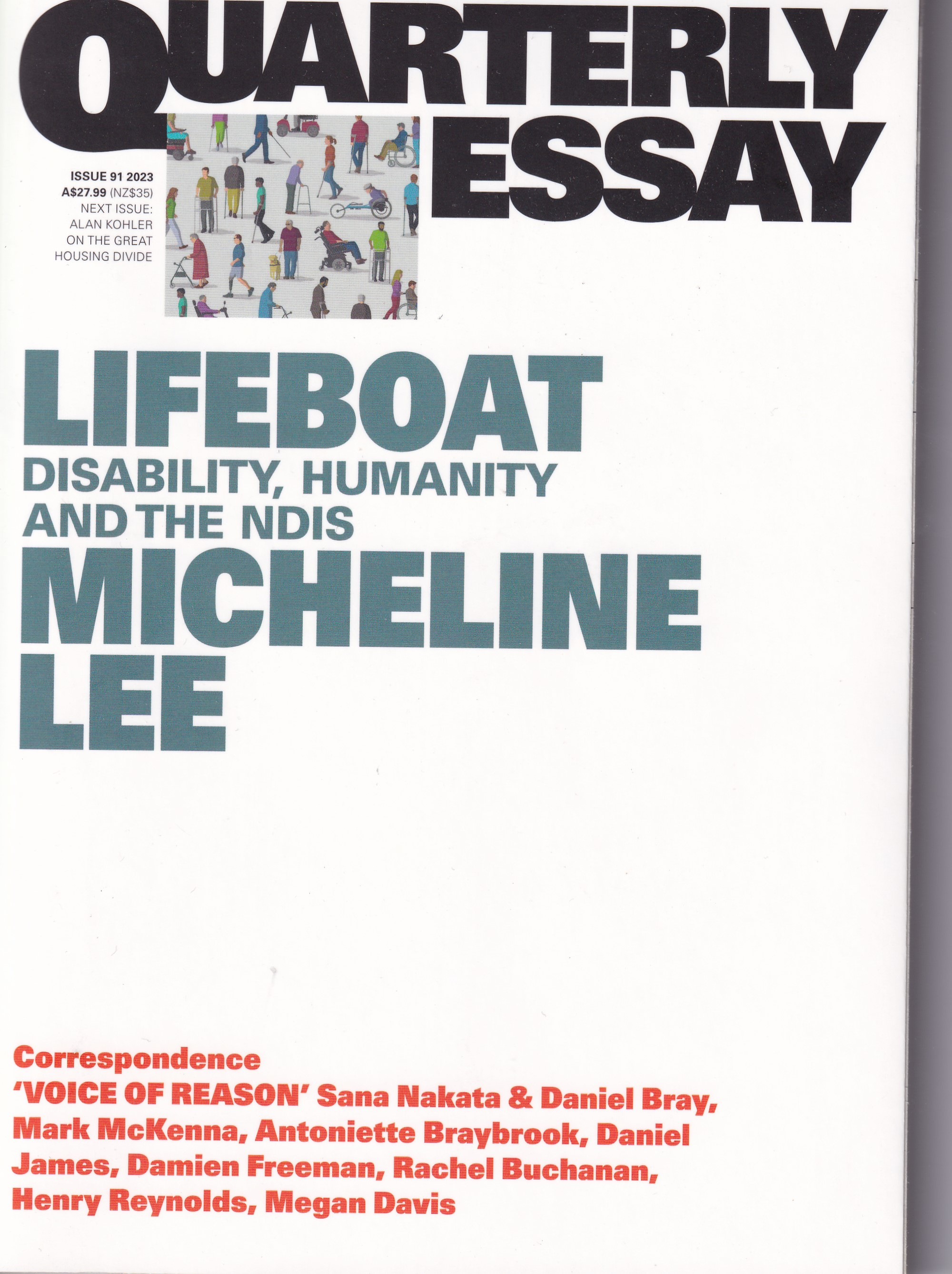 Still cracking on with Quarterly Essay, I read Lifeboat, by Michelline Lee. It was terribly depressing (are they all??). I worked in Aged Care for three years, and we had some interactions with the NDIS because of having NDIS clients in Residential Aged Homes (which we were working on unpicking). The only good thing anyone ever said about the NDIS is that at least it's not Aged Care, which is a pretty low bar if you ask me.